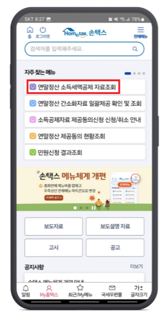 손으로 하는 연말정산 모바일 국세청 앱을 통해 세금을 확인할 수 있습니다.